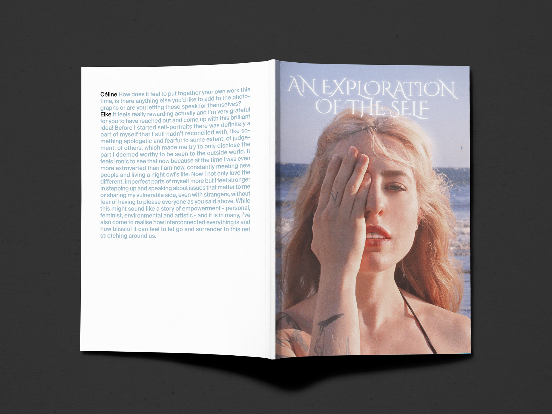 For the magazine retrospective An exploration of the self, Céline Nidegger and Elke Bucher dive into the art of self portraiture embedded into graphic design, reflect on what and who inspires them and look back on an enduring, creative friendship. Special thanks for our interviewees Katharina Jung, Ellie Cutajar and Flora Eis for contributing your beautiful work and thoughts as well as Matthieu Gill, Amber Noire and Ludovica Credendino for your beautiful contribution for our photo series Drowning Rituals featured here. Don’t hesitate to get in touch if you have any questions about the magazine!